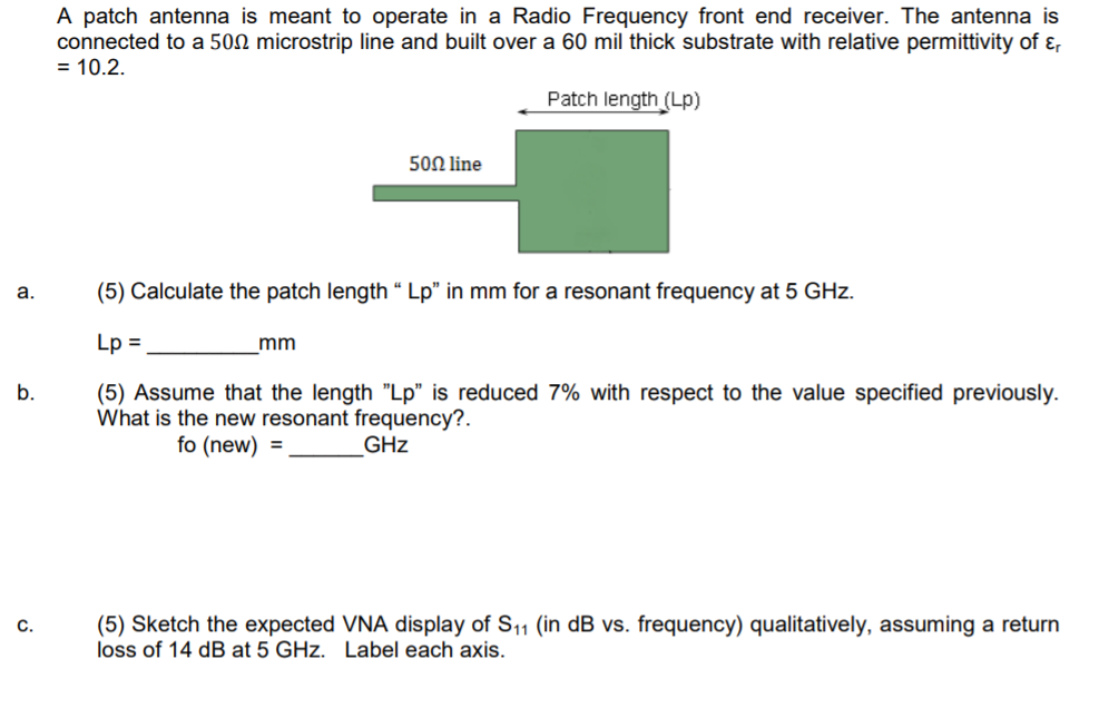 Solved: A Patch Antenna Is Meant To Operate In A Radio Fre... | Chegg.com