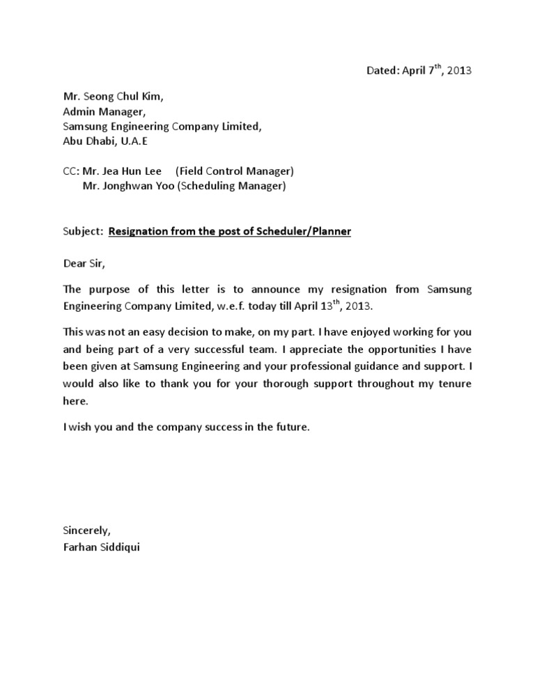 Resignation Letter 24 Hour Notice Template Employment Justice